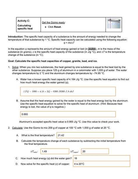 Download online Gizmo Answer Key Calorimetry Lab Doc Internet Archive